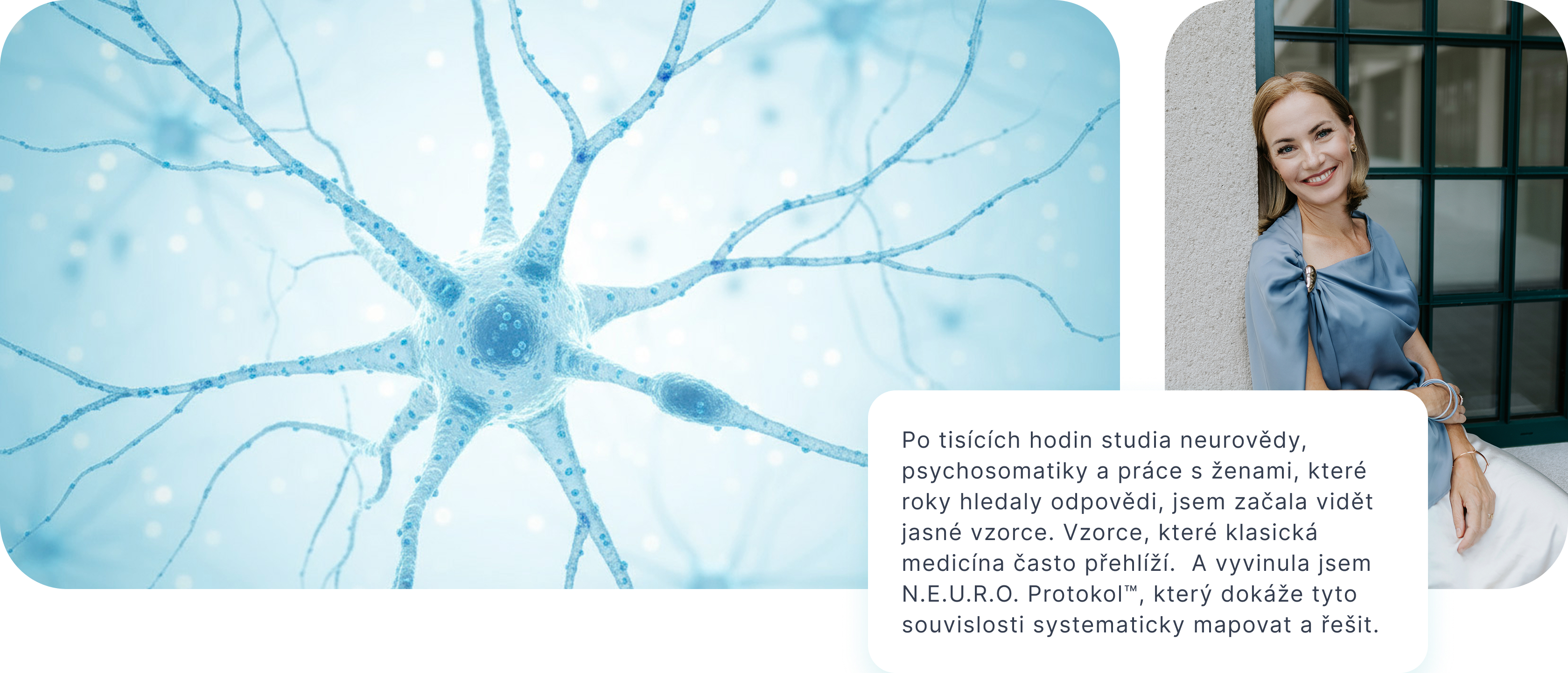 Před sedmi lety jsem sama ležela v nemocnici s tak silnými bolestmi, že jsem nemohla vstát z postele. Absolvovala jsem desítky vyšetření, ale lékaři nenašli nic. Po tisících hodin studia neurovědy, psychosomatiky a práce s klientkami jsem objevila vzorce, které klasická medicína přehlíží - jak se traumatické události a stres ukládají do těla a postupně vedou k fyzickým symptomům. Dnes, po pomoci více než 1 100 ženám, vím, že každý symptom má svůj příběh a každé tělo má schopnost se uzdravit, když konečně pochopí, co mu chybí.